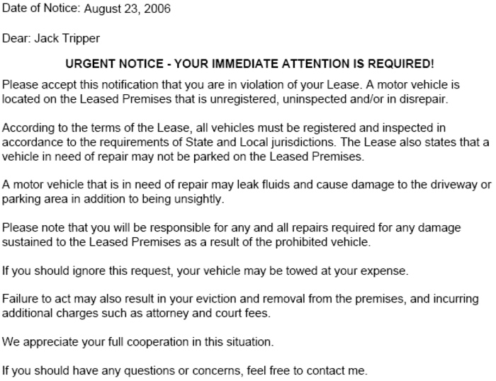 Deliver all of your important messages using tenant notices through either certified mail or emailed through our website with a read receipt create that paper trail. The letter can serve as a warning letter to the tenant. We are writing to ensure that all of our tenants understand and respect the parking.